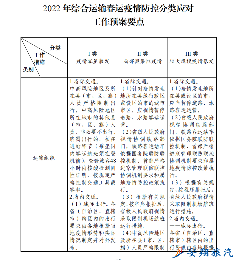 附表:2022年綜合運(yùn)輸春運(yùn)疫情防控分類(lèi)應(yīng)對(duì)工作預(yù)案要點(diǎn)