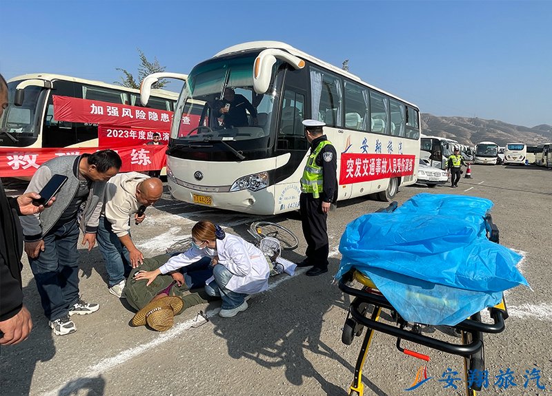 本次演練的項(xiàng)目有:1、旅客突發(fā)身體狀況應(yīng)急處置(高原反應(yīng)引發(fā)的病癥);2、簡易刮擦事故的應(yīng)急處置;3、駕駛員突發(fā)身體狀況的應(yīng)急處置;4、發(fā)生行人、非機(jī)動(dòng)車碰撞“事故”的應(yīng)急處置;5、高速公路發(fā)生的重大交通事故應(yīng)急處置;6、滅火器實(shí)操演練。