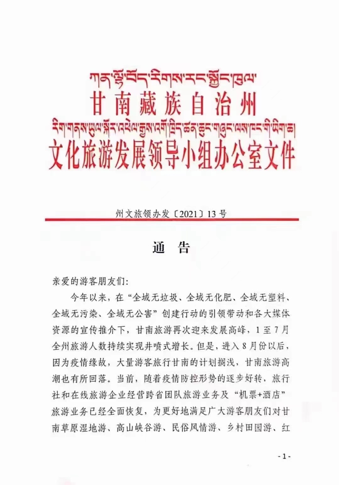 即日起,甘南全域免門票啦! 通 告 親愛的游客朋友們: 今年以來,在全域無垃圾、全域無化肥、全域無塑料、全域無污染、全域無公害創(chuàng)建行動的引領帶動和各大媒體資源的宣傳推介......【點擊詳情】