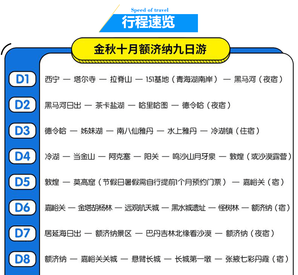 青甘大環(huán)線8天7晚豪華純游玩(塔爾寺+拉脊山+馬河+茶卡鹽湖+德令哈+姊妹湖 +南八仙雅丹地貌+當金山+阿克塞+陽關+月牙泉+敦煌+嘉峪關+額濟納胡楊林+張掖 七彩丹霞+祁連大草原) 額濟納旗......【點擊詳情】